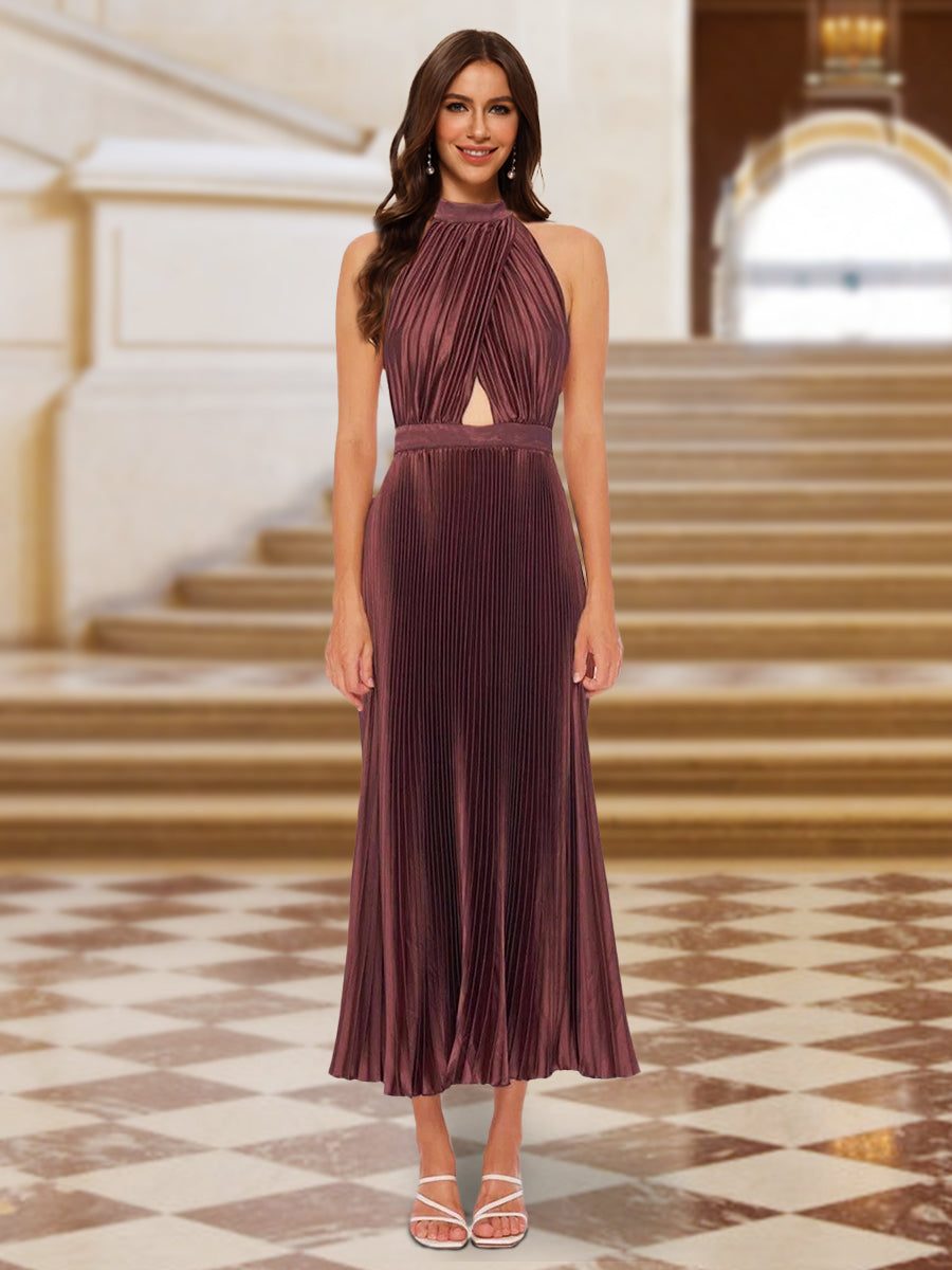 Etui-Linie/Säule Neckholder Ärmellose Abendkleider mit Falten