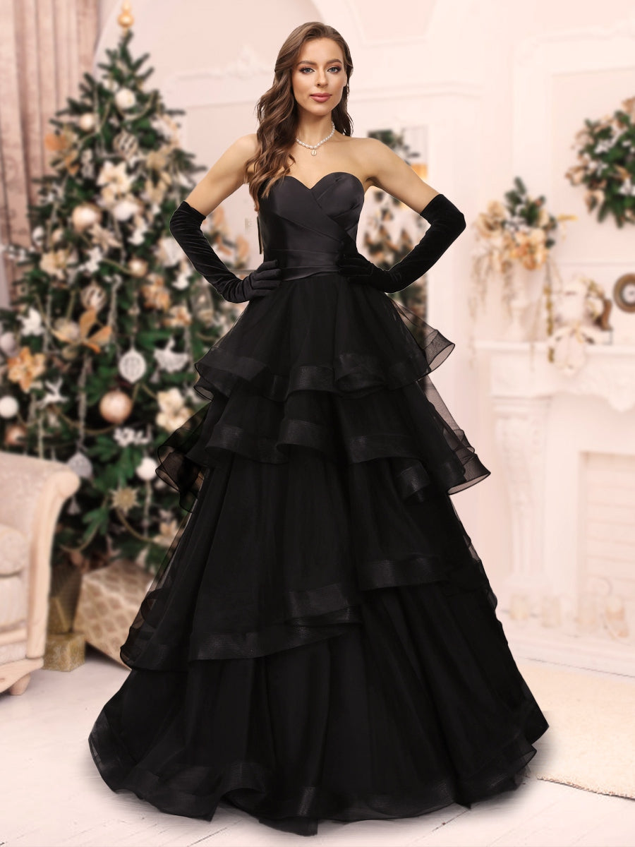 A-Linie/Princess-Linie Herzausschnitt Lange Tüll Weihnachtskleider mit Rüschen