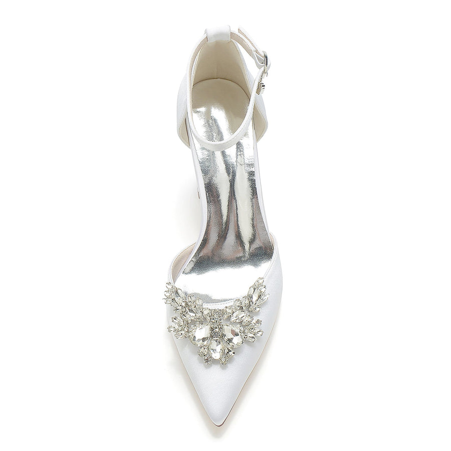 Damen Knöchelriemen Seidensatin mit Strass Geschlossene Zehenpartie Blockabsatz Hochzeitsschuhe