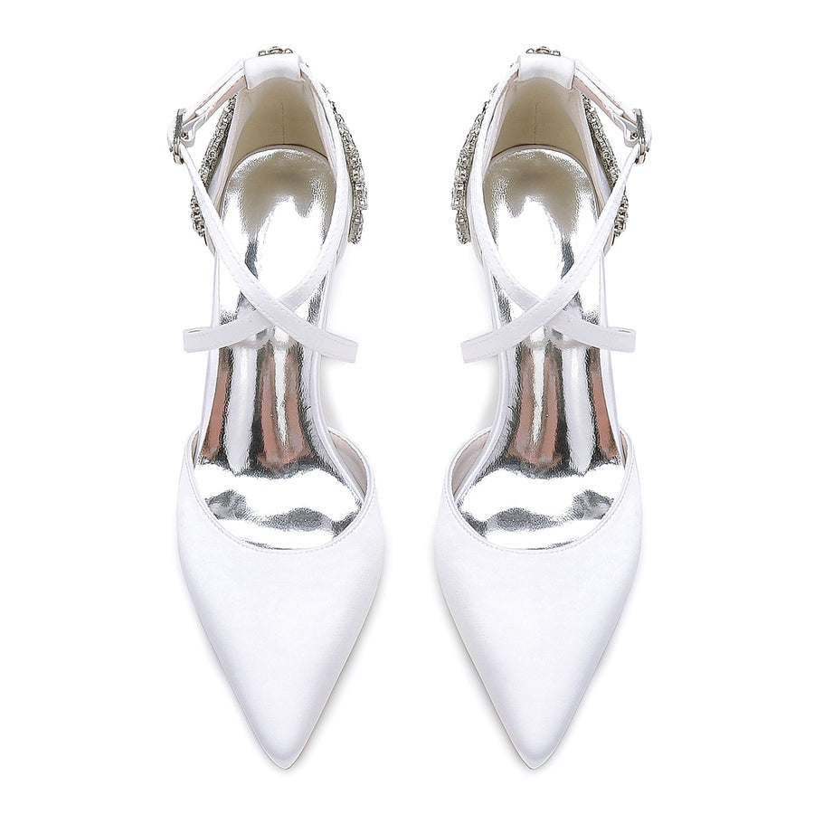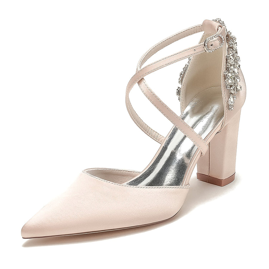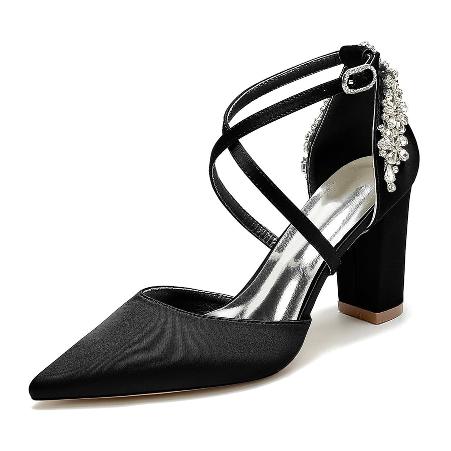 Damen Seidensatin Geschlossene Zehenpartie Mit Knöchelriemen Strass Blockabsatz Abendschuhe